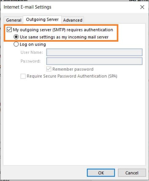 Check the option for SMTP requires authentication (sometimes referred to as “My server requires SMTP authentication”).