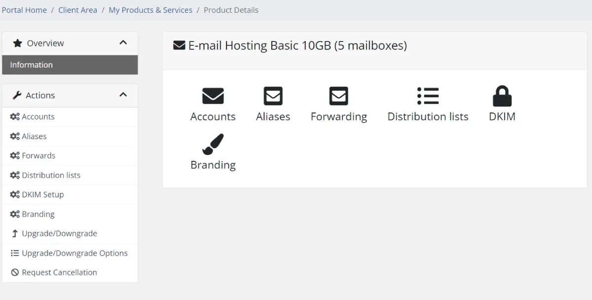 Define your email hosting plans inside WHMCS and start offering them to your new and existing customers. It’s that easy!